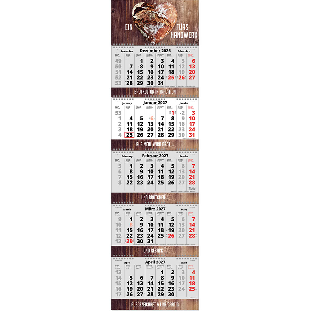 Einteiliger 5-Monatskalender